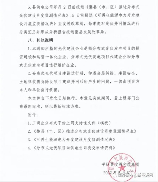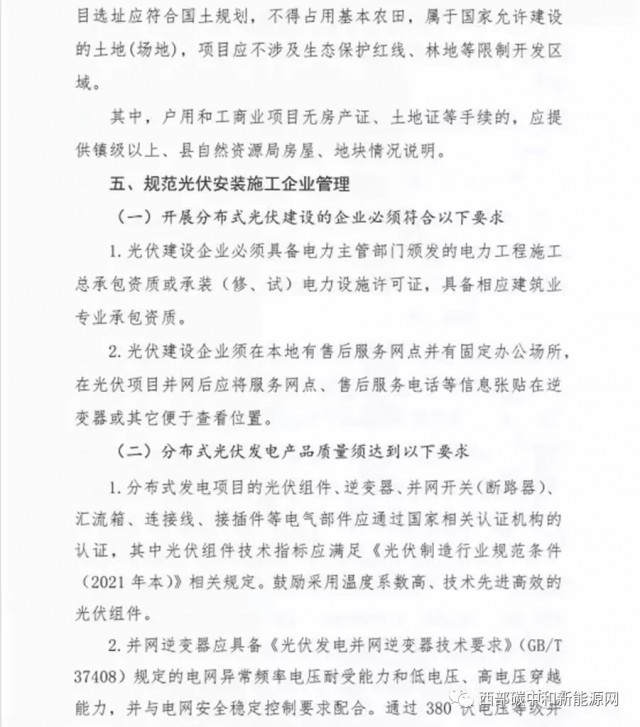 此外,整縣分布式開(kāi)發(fā)按照“光伏+儲(chǔ)能”方式推進(jìn),根據(jù)具體消納情況配建或租賃不低于15%、2小時(shí)的儲(chǔ)能設(shè)施。電網(wǎng)消納能力不足時(shí),應(yīng)提高儲(chǔ)能配置比例及充放電時(shí)長(zhǎng),確保分布式光伏就地就近消納、滿足95%利用率要求。