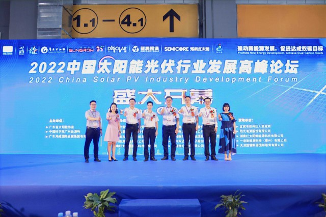 此次展會(huì),湖南紅太陽(yáng)光伏產(chǎn)品事業(yè)部總經(jīng)理凌付榮(右三)受邀出席2022中國(guó)太陽(yáng)能光伏行業(yè)發(fā)展高峰論壇開(kāi)幕儀式,與行業(yè)內(nèi)精英共同見(jiàn)證太陽(yáng)能光伏行業(yè)的這一具有代表性的時(shí)刻。