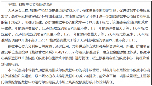 第三章 全面推進(jìn)綠色低碳循環(huán)發(fā)展將應(yīng)對氣候變化和節(jié)能作為推進(jìn)高質(zhì)量發(fā)展的重要途徑,全面落實(shí)首都城市戰(zhàn)略定位,深入貫徹減量發(fā)展、綠色發(fā)展理念,統(tǒng)籌推進(jìn)產(chǎn)業(yè)結(jié)構(gòu)、能源結(jié)構(gòu)、城市功能綠色低碳轉(zhuǎn)型,加快釋放綠色發(fā)展新動能,有力促進(jìn)京津冀區(qū)域綠色發(fā)展。一、深度推動產(chǎn)業(yè)結(jié)構(gòu)優(yōu)化調(diào)整(一)系統(tǒng)推進(jìn)產(chǎn)業(yè)結(jié)構(gòu)升級積極發(fā)展科技含量高、資源消耗低、碳排放少的高精尖產(chǎn)業(yè),加快高耗能高排放生產(chǎn)制造企業(yè)及生產(chǎn)環(huán)節(jié)的退出及高耗能設(shè)備的淘汰,有序引導(dǎo)不符合首都功能定位的一般制造業(yè)轉(zhuǎn)移退出,嚴(yán)控、壓減在京石化生產(chǎn)規(guī)模和水泥產(chǎn)能。修訂并嚴(yán)格執(zhí)行新增產(chǎn)業(yè)禁止和限制目錄,按照先進(jìn)節(jié)能低碳標(biāo)準(zhǔn)設(shè)計(jì)準(zhǔn)入條件,堅(jiān)決控制高耗能、高排放項(xiàng)目新建和改擴(kuò)建。強(qiáng)化環(huán)評、能評和碳評源頭協(xié)同控制,嚴(yán)格控制新建項(xiàng)目能耗和碳排放水平。以綠色技術(shù)創(chuàng)新引領(lǐng)高精尖產(chǎn)業(yè)發(fā)展,持續(xù)推進(jìn)綠色制造體系建設(shè),努力培育新能源、新材料、新能源汽車、燃料電池、氫能等產(chǎn)業(yè)新增長點(diǎn)。建設(shè)新能源產(chǎn)業(yè)集聚中心和產(chǎn)業(yè)化示范基地,提升產(chǎn)業(yè)鏈、供應(yīng)鏈現(xiàn)代化水平,積極創(chuàng)建國家綠色產(chǎn)業(yè)基地,打造具有國際競爭力的綠色產(chǎn)業(yè)集群。培育發(fā)展綠色智慧技術(shù)服務(wù)新業(yè)態(tài),為綠色低碳發(fā)展提供技術(shù)支持。到2025年,基本形成具有首都特點(diǎn)的現(xiàn)代化綠色經(jīng)濟(jì)體系。(三)持續(xù)推動產(chǎn)業(yè)綠色化改造對標(biāo)國際國內(nèi)先進(jìn)能效和碳排放水平,實(shí)施一批節(jié)能低碳技術(shù)改造項(xiàng)目。開展重點(diǎn)行業(yè)綠色化改造,推動燃?xì)怆姀S、燃?xì)忮仩t、工業(yè)窯爐、污水處理廠、數(shù)據(jù)中心等余熱余壓回收利用,加快實(shí)施道路照明節(jié)能改造,提升新建數(shù)據(jù)中心能效標(biāo)準(zhǔn),持續(xù)開展數(shù)據(jù)中心節(jié)能降碳改造。大力發(fā)展循環(huán)經(jīng)濟(jì),全面推行清潔生產(chǎn),推動資源綜合利用。開展市級以上園區(qū)綠色低碳循環(huán)改造,強(qiáng)化園區(qū)資源梯級利用和系統(tǒng)優(yōu)化?!笆奈濉睍r(shí)期制造業(yè)碳排放基本實(shí)現(xiàn)增減平衡,單位工業(yè)增加值能耗和二氧化碳排放分別下降12%以上和20%左右。二、深入推進(jìn)能源結(jié)構(gòu)低碳轉(zhuǎn)型大力推進(jìn)以電代煤,有序推進(jìn)以電代油、以電代氣,嚴(yán)控化石能源消費(fèi)增長,確保能源活動碳排放總量不超過“十三五”總體水平。加快削減工業(yè)用煤,現(xiàn)有燃煤機(jī)組作為應(yīng)急備用機(jī)組,有序推進(jìn)山區(qū)村莊煤改清潔能源,基本實(shí)現(xiàn)淺山區(qū)村莊“無煤化”,非應(yīng)急情況下基本不再使用煤炭,煤炭消費(fèi)總量控制在100萬噸以內(nèi)。推進(jìn)油品消費(fèi)總量穩(wěn)中有降,加快機(jī)動車電氣化替代,控制航空煤油過快增長??刂铺烊粴饫靡?guī)模,天然氣消費(fèi)總量控制在200億立方米左右。因地制宜發(fā)展本市可再生能源,大力發(fā)展光伏、地?zé)幔m度發(fā)展風(fēng)電和垃圾焚燒發(fā)電,促進(jìn)氫能示范應(yīng)用。推進(jìn)分布式發(fā)電就地并網(wǎng)使用,積極發(fā)展“新能源+儲能”“源網(wǎng)荷儲”和多能互補(bǔ)。按照“宜建盡建、應(yīng)用盡用”的原則,優(yōu)先使用可再生能源保障供給,完善可再生能源利用的基礎(chǔ)設(shè)施和產(chǎn)業(yè)配套,推動可再生能源、新技術(shù)與城市融合發(fā)展。2025年全市可再生能源比重達(dá)到14.4%以上。大力發(fā)展地?zé)峒盁岜?、太陽能、儲能蓄熱等清潔供熱模式?025年全市可再生能源供熱面積占比達(dá)到10%以上。(三)推動京津冀區(qū)域能源低碳轉(zhuǎn)型加強(qiáng)京津冀能源一體化發(fā)展,強(qiáng)化低碳能源開發(fā)合作。建設(shè)跨區(qū)域的電力、天然氣、油品等能源輸送通道,推進(jìn)區(qū)域內(nèi)能源基礎(chǔ)設(shè)施互聯(lián)互通。共同開發(fā)區(qū)域內(nèi)風(fēng)能和太陽能等資源,優(yōu)先安排可再生能源、清潔能源和高效電源上網(wǎng)。高標(biāo)準(zhǔn)建設(shè)張家口可再生能源示范區(qū)。促進(jìn)北京與河北新能源基地合作共建,加快西北、南部方向綠色電力輸送通道和配電調(diào)峰儲能設(shè)施建設(shè),切實(shí)提高本市綠色電力消納能力,2025年全市外調(diào)綠色電力力爭達(dá)到300億千瓦時(shí)。有序布局氫能產(chǎn)業(yè)發(fā)展,以科技創(chuàng)新為核心,強(qiáng)化政策引領(lǐng)和產(chǎn)業(yè)培育,驅(qū)動京津冀氫能產(chǎn)業(yè)協(xié)同發(fā)展,合力構(gòu)建氫能與燃料電池全產(chǎn)業(yè)鏈。三、扎實(shí)推動城市功能轉(zhuǎn)型升級(一)引領(lǐng)城市規(guī)劃建設(shè)綠色升級持續(xù)優(yōu)化城市功能