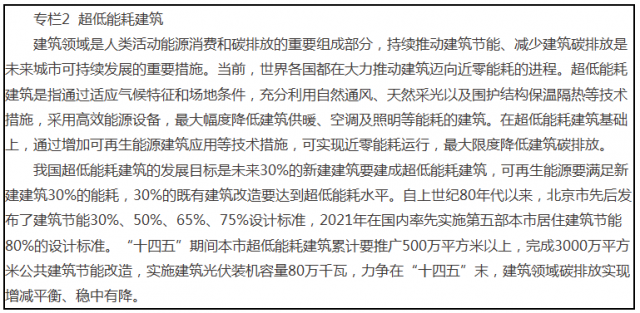 各區(qū)人民政府,市有關(guān)部門及相關(guān)單位:經(jīng)市政府同意,現(xiàn)將《北京市“十四五”時(shí)期應(yīng)對氣候變化和節(jié)能規(guī)劃》印發(fā)給你們,請認(rèn)真貫徹執(zhí)行。北京市“十四五”時(shí)期應(yīng)對氣候變化和節(jié)能規(guī)劃“中國將力爭2030年前實(shí)現(xiàn)碳達(dá)峰,2060年前實(shí)現(xiàn)碳中和”,習(xí)近平總書記這一莊嚴(yán)宣誓彰顯了中國積極應(yīng)對氣候變化、努力構(gòu)建人類命運(yùn)共同體、走綠色低碳發(fā)展道路的堅(jiān)定決心,為我國今后一個(gè)時(shí)期應(yīng)對氣候變化和節(jié)能工作指明了方向。北京作為首都,要將碳達(dá)峰碳中和作為謀劃首都未來發(fā)展的重要目標(biāo)和展示城市國際形象的重要契機(jī),充分把握時(shí)代機(jī)遇,統(tǒng)籌處理好經(jīng)濟(jì)社會發(fā)展與節(jié)能降碳、積極應(yīng)對氣候變化的內(nèi)在聯(lián)系,深入推進(jìn)能源低碳革命,推動經(jīng)濟(jì)高質(zhì)量發(fā)展和生態(tài)環(huán)境高水平保護(hù)。按照國家和本市應(yīng)對氣候變化和節(jié)能工作總體部署,為努力實(shí)現(xiàn)碳排放達(dá)峰后穩(wěn)中有降,在碳達(dá)峰碳中和實(shí)踐進(jìn)程中探索出北京經(jīng)驗(yàn)、貢獻(xiàn)北京力量,確保應(yīng)對氣候變化和節(jié)能工作繼續(xù)走在全國前列,特制定本規(guī)劃。本規(guī)劃主要依據(jù)《北京城市總體規(guī)劃(2016年-2035年)》《北京市國民經(jīng)濟(jì)和社會發(fā)展第十四個(gè)五年規(guī)劃和二〇三五年遠(yuǎn)景目標(biāo)綱要》《北京市“十四五”時(shí)期生態(tài)環(huán)境保護(hù)規(guī)劃》《北京市“十四五”時(shí)期能源發(fā)展規(guī)劃》等文件編制。“十三五”時(shí)期,本市深入推進(jìn)應(yīng)對氣候變化與節(jié)能工作,率先建立能源消費(fèi)和碳排放“雙控”機(jī)制,先行先試協(xié)同推進(jìn)能源節(jié)約、溫室氣體排放控制和污染防治工作,綜合運(yùn)用市場機(jī)制、標(biāo)準(zhǔn)引領(lǐng)、技術(shù)推廣、工程支撐、宣傳引導(dǎo)等多重手段,取得積極成效。規(guī)劃主要目標(biāo)均超額完成,能源活動碳排放進(jìn)入達(dá)峰平臺期,2020年能源消費(fèi)總量控制在6762萬噸標(biāo)準(zhǔn)煤,單位地區(qū)生產(chǎn)總值能耗和二氧化碳排放分別累計(jì)下降23%以上和26%以上,能源利用效率和碳排放強(qiáng)度保持全國省級地區(qū)最優(yōu)水平。(一)綠色低碳的高質(zhì)量發(fā)展格局基本形成深入落實(shí)城市戰(zhàn)略定位,率先樹立減量發(fā)展理念,經(jīng)濟(jì)高質(zhì)量發(fā)展邁出堅(jiān)實(shí)步伐。發(fā)布北京市新增產(chǎn)業(yè)禁止和限制目錄,并動態(tài)調(diào)整。嚴(yán)格開展固定資產(chǎn)投資項(xiàng)目節(jié)能審查,從源頭禁止建設(shè)高耗能、高排放項(xiàng)目。累計(jì)淘汰退出2154家不符合首都功能的一般制造業(yè)和污染企業(yè),工業(yè)能耗和碳排放量持續(xù)下降。積極開展綠色制造體系創(chuàng)建,創(chuàng)建國家級綠色工廠67家。金融、信息、科技等現(xiàn)代服務(wù)業(yè)優(yōu)勢更加凸顯,數(shù)字經(jīng)濟(jì)增加值占地區(qū)生產(chǎn)總值比重超四成,全市地區(qū)生產(chǎn)總值先后跨越兩個(gè)萬億臺階,人均地區(qū)生產(chǎn)總值和全員勞動生產(chǎn)率保持全國領(lǐng)先。大幅減少煤炭用量,平原地區(qū)基本實(shí)現(xiàn)無煤化,全市煤炭消費(fèi)總量由2015年的1165萬噸削減到2020年的135萬噸,煤炭占能源消費(fèi)總量的比重下降至1.5%。天然氣消費(fèi)占比上升到37.2%,電力消費(fèi)占比為27.8%,實(shí)現(xiàn)了能源結(jié)構(gòu)優(yōu)化轉(zhuǎn)型,化石能源內(nèi)部清潔化調(diào)整基本完成。因地制宜發(fā)展光伏、風(fēng)電、地?zé)岬瓤稍偕茉矗e極增加外調(diào)綠電,制定實(shí)施強(qiáng)有力的光伏、風(fēng)電支持政策,可再生能源占比達(dá)到10.4%。(三)重點(diǎn)領(lǐng)域節(jié)能降碳效果全面顯現(xiàn)積極推廣綠色建筑,累計(jì)建設(shè)綠色建筑1.28億平方米,示范推廣超低能耗建筑53萬平方米,穩(wěn)步推進(jìn)裝配式建筑發(fā)展,新建裝配式建筑面積累計(jì)超過5400萬平方米。大力發(fā)展低碳交通,軌道交通運(yùn)營里程達(dá)到726公里,新能源車輛達(dá)到40余萬輛。構(gòu)建市場導(dǎo)向的綠色技術(shù)創(chuàng)新體系,推廣200多項(xiàng)先進(jìn)適用節(jié)能技術(shù)產(chǎn)品,實(shí)施新一輪節(jié)能減排促消費(fèi)政策,持續(xù)提升節(jié)能家電市場占有率。完成新一輪百萬畝造林綠化任務(wù)和森林碳匯提升工程,森林覆蓋率達(dá)到44.6%,森林碳匯儲量增加約200萬噸。成立市委生態(tài)文明建設(shè)委員會,下設(shè)大氣污染綜合治理及應(yīng)對氣候變化工作小組、推動形成綠色發(fā)展方式和生活方式工作小組,建立了各區(qū)和各部門相互協(xié)作的工作機(jī)制。將能源消費(fèi)和碳排放總量與強(qiáng)度目標(biāo)分解到各區(qū)、各行業(yè)主管部門,并按年度進(jìn)行考核。強(qiáng)化標(biāo)準(zhǔn)的規(guī)范約束作用,累計(jì)在建筑、交通、工業(yè)等領(lǐng)域出臺近百項(xiàng)節(jié)能降碳地方標(biāo)準(zhǔn)。支持推廣合同能源管理模式,持續(xù)開展
