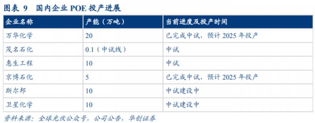 萬華化學(xué):2021年9月,公司自主知識產(chǎn)權(quán)的POE產(chǎn)品已經(jīng)完成中試。按照規(guī)劃,萬華將在2023年投產(chǎn)10萬噸POE,2025年之前合計投產(chǎn)20萬噸。