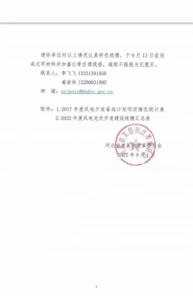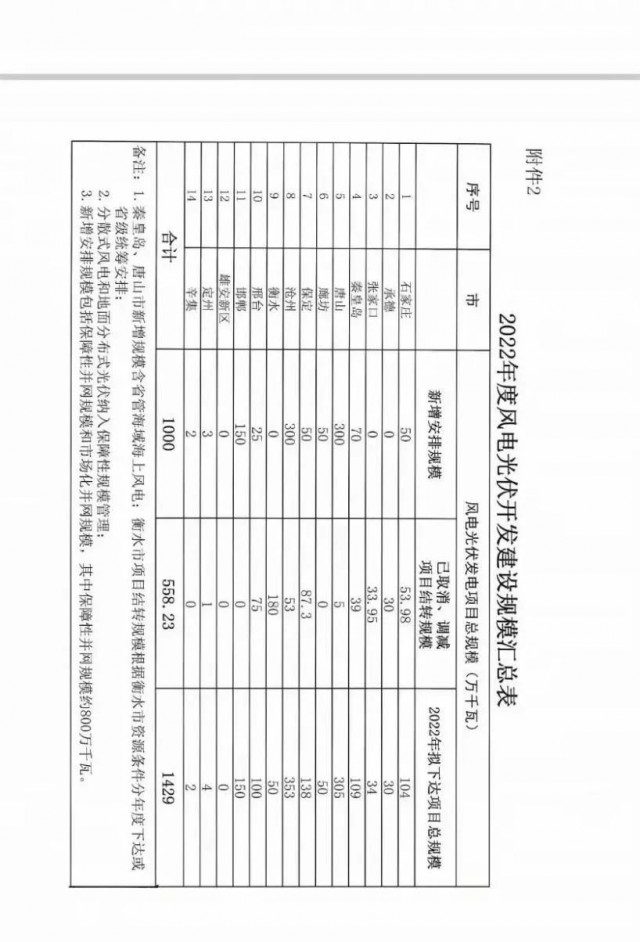 9月1日,河北省發(fā)改委發(fā)布了《關(guān)于征求風(fēng)電光伏項目開發(fā)建設(shè)意見建議的函》,并公示了 2022年度風(fēng)電、光伏開發(fā)建設(shè)規(guī)模匯總表。