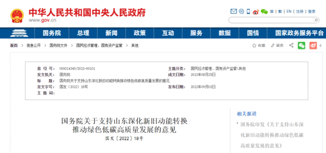 國務院關于支持山東深化新舊動能轉換推動綠色低碳高質(zhì)量發(fā)展的意見
