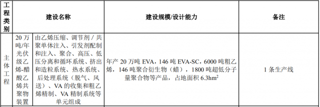 項目名稱:20 萬噸/年光伏級乙烯-醋酸乙烯共聚物項目、公用工程及輔助設施項目;