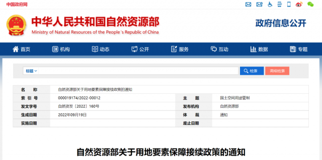 9月23日,自然資源部發(fā)布《關(guān)于用地要素保障接續(xù)政策的通知》。