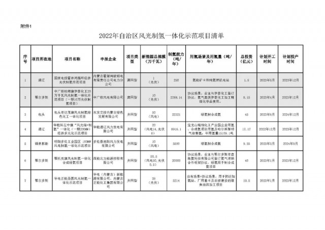 為深入貫徹習(xí)近平總書記關(guān)于內(nèi)蒙古系列重要指示精神和《內(nèi)蒙古自治區(qū)人民政府辦公廳關(guān)于促進(jìn)氫能產(chǎn)業(yè)高質(zhì)量發(fā)展的意見》(內(nèi)政辦發(fā)〔2022〕15號(hào))精神,有序推動(dòng)全區(qū)風(fēng)光制氫一體化示范項(xiàng)目建設(shè),按照《內(nèi)蒙古自治區(qū)風(fēng)光制氫一體化示范項(xiàng)目實(shí)施細(xì)則(2022年版)》有關(guān)要求,我局組織評(píng)估并優(yōu)選了7個(gè)風(fēng)光制氫一體化示范項(xiàng)目(以下簡(jiǎn)稱“示范項(xiàng)目”),經(jīng)自治區(qū)人民政府審定同意批復(fù)實(shí)施。現(xiàn)將有關(guān)事宜通知如下。