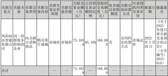 根據(jù)2022年半年報(bào)披露,亞瑪頓95.16%的原片玻璃,都采購自同一家公司——鳳陽硅谷。而這家公司,與亞瑪頓是同一控股股東控制的企業(yè),即為兄弟公司。