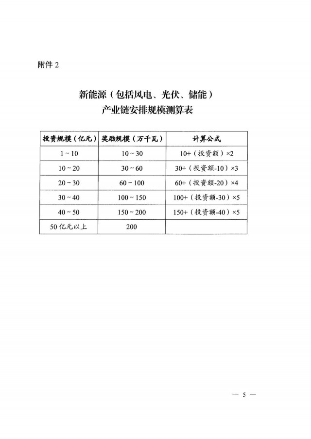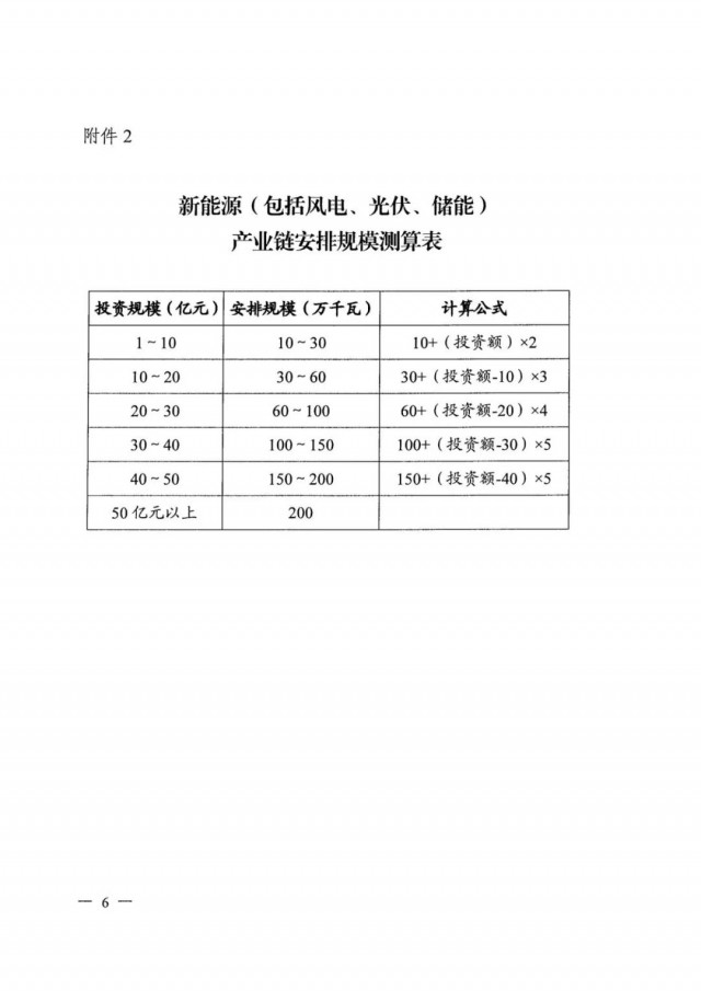 在項目規(guī)模分配規(guī)則方面則根據(jù)制造業(yè)項目的具體投資額按對應(yīng)公式進行計算,例如1~10億元投資對應(yīng)100~300MW項目規(guī)模,30~40億元投資對應(yīng)1~1.5GW,50億元以上則統(tǒng)一為2GW項目規(guī)模。需要注意的是,不支持耗能強度高于全省平均水平的項目,若屬于補鏈項目則安排規(guī)模減半。