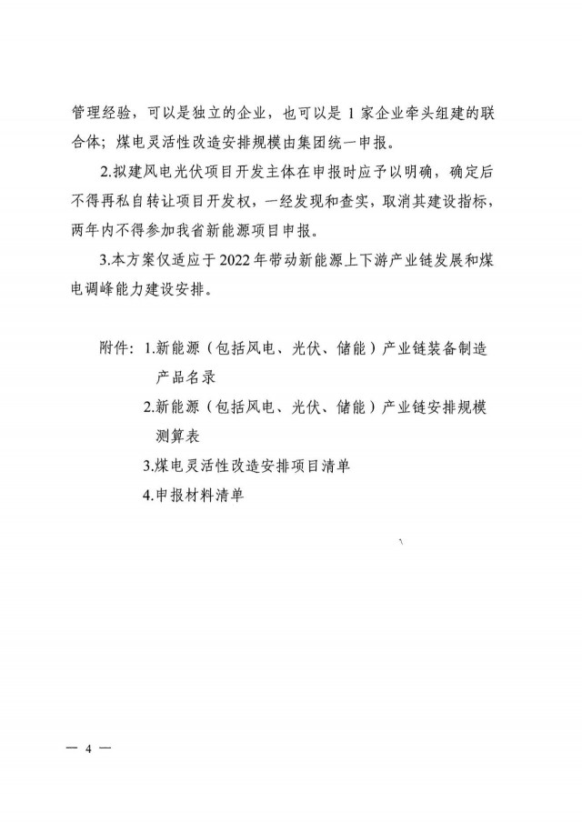 需要強調(diào)的是,產(chǎn)業(yè)配套項目允許企業(yè)單獨申報,也可由1家企業(yè)牽頭以聯(lián)合體形式申報,煤電改造配套則由集團統(tǒng)一申報。項目開發(fā)主體申報確認(rèn)后不得私自轉(zhuǎn)讓項目開發(fā)權(quán),否則將取消指標(biāo),2年內(nèi)不得參與省內(nèi)新能源項目開發(fā)。
