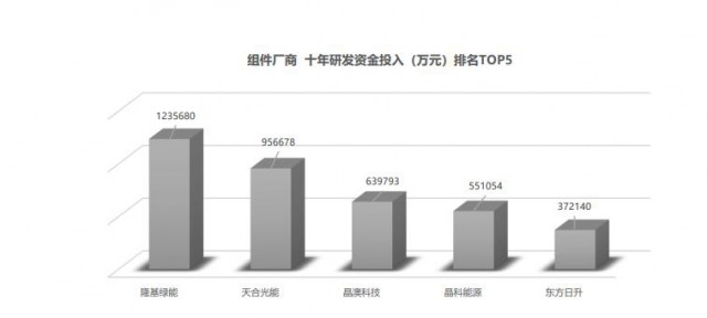 ?圖:據(jù)可統(tǒng)計(jì)數(shù)據(jù),2012—2021(組件廠(chǎng)商)研發(fā)資金投入排名TOP5
