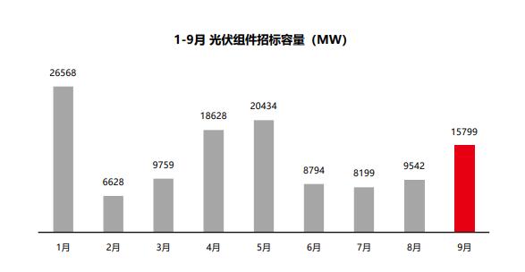 ?圖:據(jù)公開(kāi)數(shù)據(jù)統(tǒng)計(jì),2022年1-9月光伏組件招標(biāo)容量(MW)