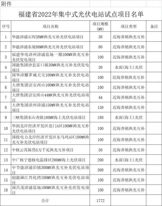福建省發(fā)展和改革委員會(huì)關(guān)于公布2022年集中式光伏電站試點(diǎn)項(xiàng)目名單的通知