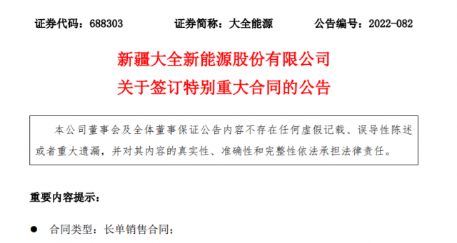 10月25日,大全能源公告,新疆大全新能源股份有限公司及全資子公司 內(nèi)蒙古大全新能源有限公司近日與某客戶(hù)簽訂了 《采購(gòu)框架合同》。