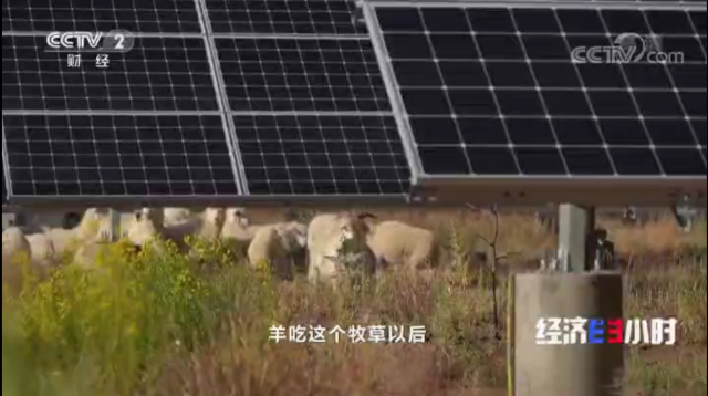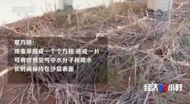 在中衛(wèi)沙漠光伏產(chǎn)業(yè)園,隨處可以見到這種四四方方的格子,這就是當?shù)刂紊车拿孛芪淦?-草方格。用麥草圍成一個個方格連成一片,可以有效將空氣中的水分子和降水長時間保持在沙層表面,為淺根性植物的生長提供水分,在方格中央及周圍撒上草籽,一旦有雨水,它們就能長得很好,而且在植物生長過程中,連成片的光伏板阻擊發(fā)揮了重要的庇護和助力作用。光伏板大面積安裝后,白天為地面植物擋住過強的陽光,有效降低地表水蒸發(fā),并且有效降低風速。夜間光伏板會凝聚部分水分,早上太陽一出來,露水滴下來滋潤著光伏園內(nèi)的土壤,有了光伏板的庇護,植物在沙漠中可以更好的扎根生長。