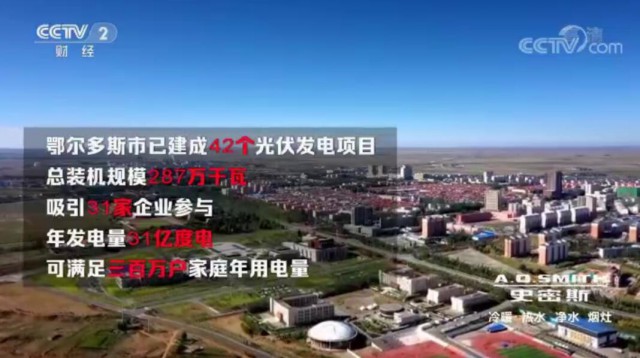 目前鄂爾多斯市已經(jīng)建成42個光伏發(fā)電項目,總裝機規(guī)模287萬千瓦,吸引了31家企業(yè)參與,研發(fā)電量和達31億度電,以每戶家庭年用電量1000度來計算,可以滿足300萬戶家庭的年用電量。