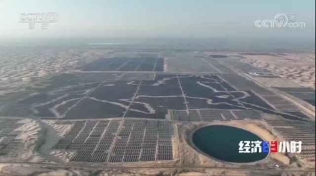 利用光伏板與周圍低矮植被,黃沙間的色差由19.6萬余塊光伏組成了一匹奔騰駿馬,這一匹占139.84萬平方米的駿馬,2019年還通過了吉尼斯世界紀錄認證,成為世界上最大的光伏板圖形。