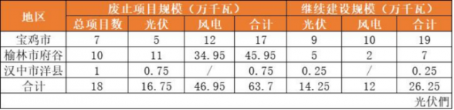 此前,陜西省就因涉及生態(tài)紅線、政策叫停、未按時開工、未核準(zhǔn)等原因廢止了約32個風(fēng)光項目,規(guī)模共計約1027MW。其中包括寶雞市、府谷縣、洋縣、西安市、咸陽市、渭南市等。根據(jù)公開信息顯示,加上此次榆林市的廢止項目,陜西省共計廢除48個風(fēng)光項目,規(guī)模1834.5MW。