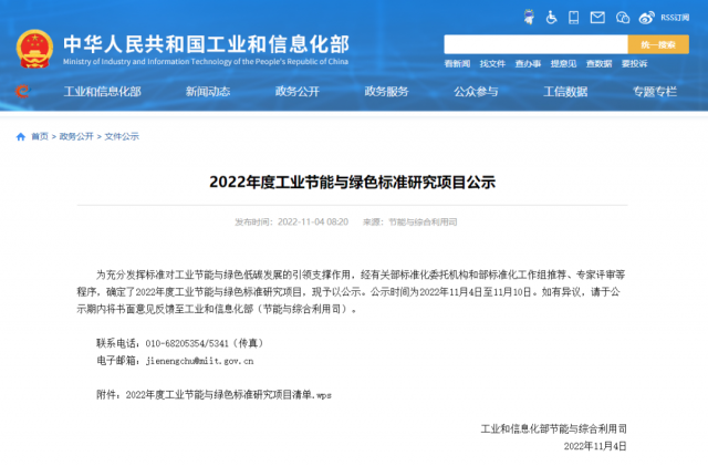 公示時間為2022年11月4日至11月10日。如有異議,可在公示期內將書面意見反饋至工業(yè)和信息化部(節(jié)能與綜合利用司)。