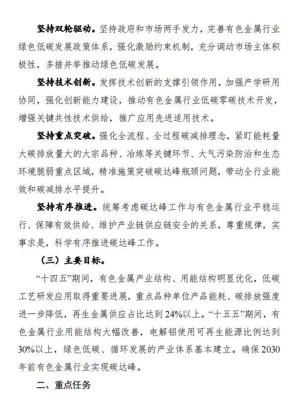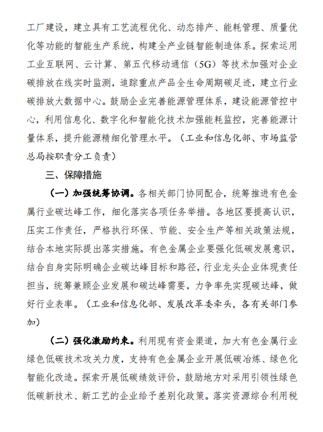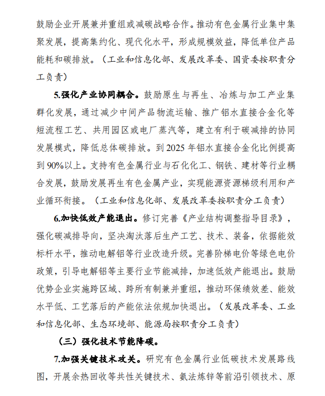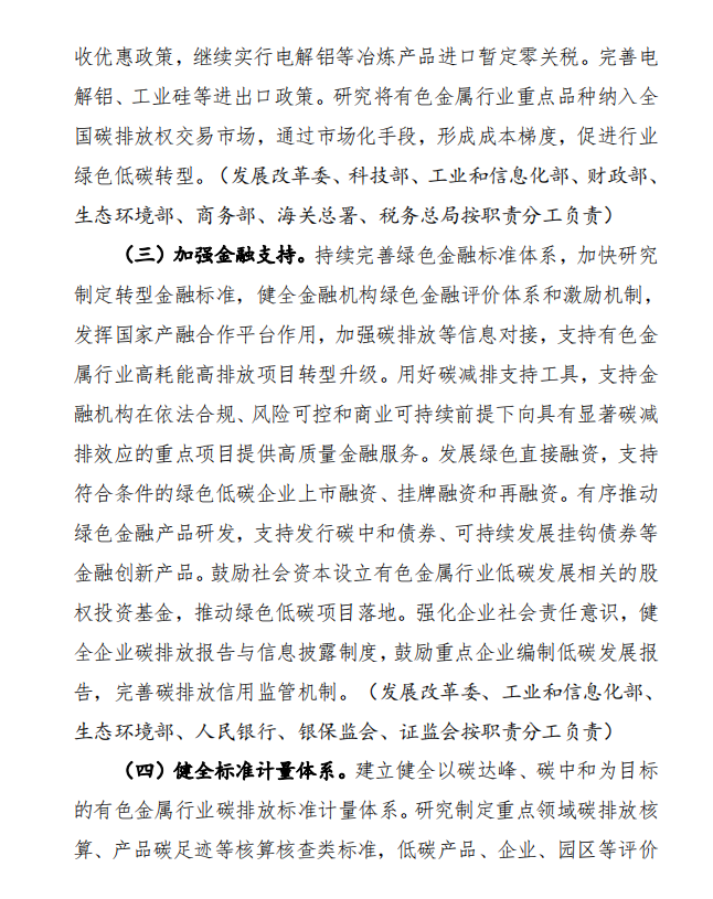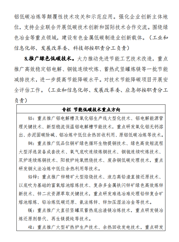 11月15日,工業(yè)和信息化部、國家發(fā)展和改革委員會和生態(tài)環(huán)境部發(fā)布《關(guān)于印發(fā)有色金屬行業(yè)碳達(dá)峰實施方案的通知》,(以下簡稱通知)通知指出,控制化石能源消費。推進有色金屬行業(yè)燃煤窯爐以電代煤,提升用能電氣化水平。在氣源有保障、氣價可承受的條件下有序推進以氣代煤。推動落后自備燃煤機組淘汰關(guān)?;虿捎们鍧嵢剂咸娲?。嚴(yán)禁在國家政策允許的領(lǐng)域以外新(擴)建燃煤自備電廠,推動電解鋁行業(yè)從使用自備電向網(wǎng)電轉(zhuǎn)化。支持企業(yè)參與光伏、風(fēng)電等可再生能源和氫能、儲能系統(tǒng)開發(fā)建設(shè)。加強企業(yè)節(jié)能管理,嚴(yán)格落實國家強制性節(jié)能標(biāo)準(zhǔn),持續(xù)開展工業(yè)節(jié)能監(jiān)察,規(guī)范企業(yè)用能行為。