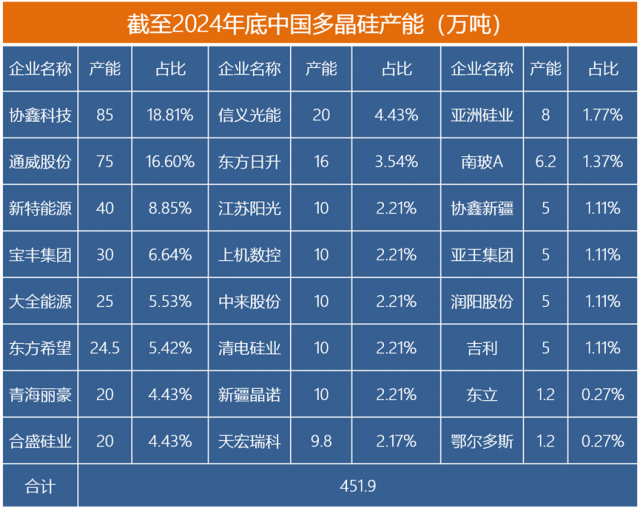 表2:截至2024年底硅料產(chǎn)能規(guī)劃;