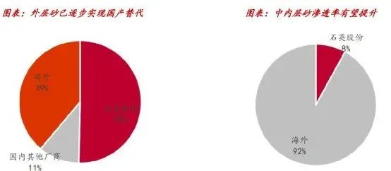 光伏石英坩堝產(chǎn)品端:光伏行業(yè)由于產(chǎn)品精密度程度高、技術(shù)發(fā)展快,對(duì)石英坩堝的純度、精度要求日益嚴(yán)格。我國(guó)的石英制品行業(yè)起步較晚,只有少數(shù)規(guī)?;髽I(yè)的石英坩堝技術(shù)方面達(dá)到先進(jìn)水平。技術(shù)上來看,近幾年我國(guó)石英制品行業(yè)的技術(shù)進(jìn)步較為明顯,尤其是石英坩堝技術(shù)水平與國(guó)外企業(yè)產(chǎn)品的差距逐步縮小,在坩堝尺寸、純度、拉晶時(shí)間和拉晶次數(shù)等方面均取得顯著進(jìn)步。此外,國(guó)內(nèi)石英坩堝具有一定的成本優(yōu)勢(shì),在質(zhì)量和性能等方面與進(jìn)口石英坩堝的差距正逐漸縮小。這些都為國(guó)產(chǎn)化創(chuàng)造了條件。從細(xì)分部件來看,外層砂已基本實(shí)現(xiàn)國(guó)產(chǎn)替代,中內(nèi)層砂產(chǎn)品和客戶認(rèn)可度逐步提升。目前石英股份的高純石英砂仍以外層砂為主,我們預(yù)計(jì)石英股份在中內(nèi)層砂質(zhì)量以及客戶認(rèn)可度上均有提升,并有望逐步提高中內(nèi)層砂的滲透率。我們預(yù)計(jì)21年石英股份外層砂份額約50%,中內(nèi)層砂份額約8%。
