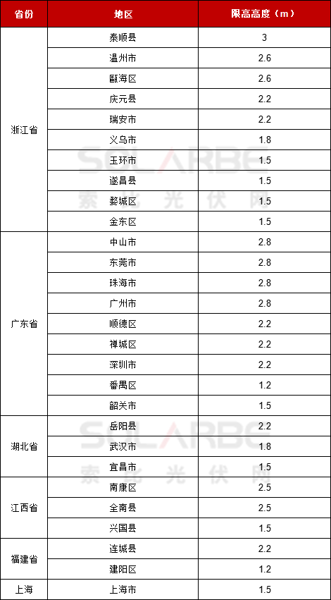 例如,為保障項(xiàng)目安全,浙江、廣東、湖北、江西、上海等地區(qū)對(duì)光伏在屋頂安裝的高度,做出了明確的規(guī)定。