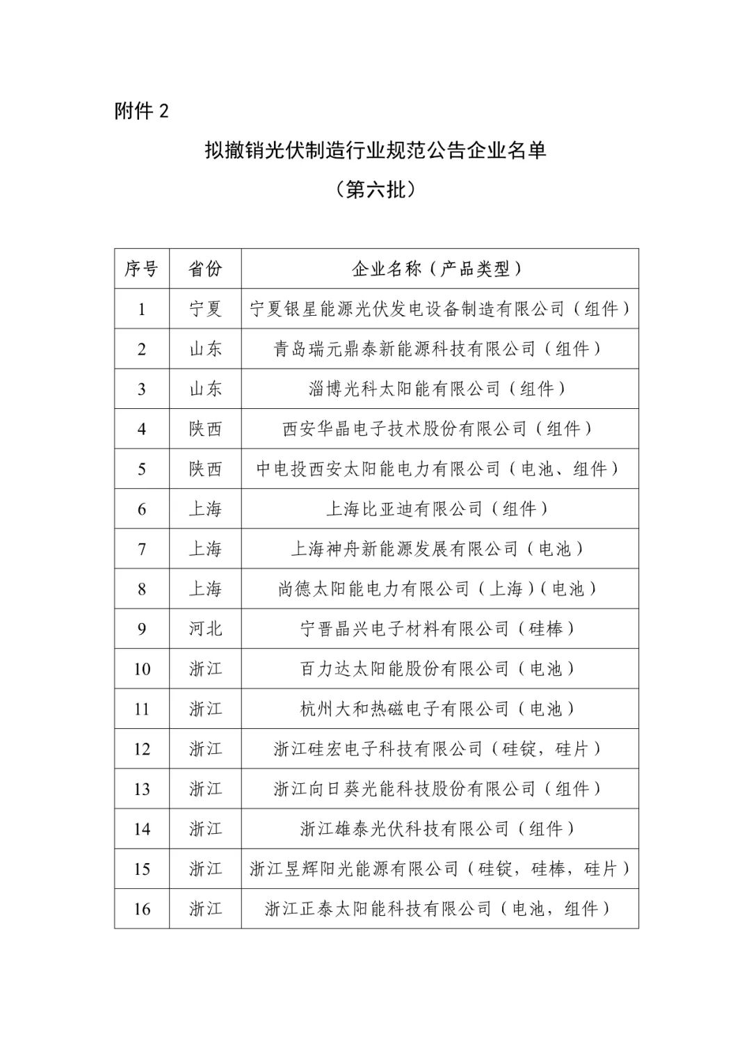 寧夏銀星能源光伏發(fā)電設(shè)備制造有限公司等16家已公告企業(yè),因不能保持規(guī)范條件要求,擬撤銷(xiāo)其規(guī)范條件企業(yè)名單,一并予以公示(見(jiàn)附件2)。