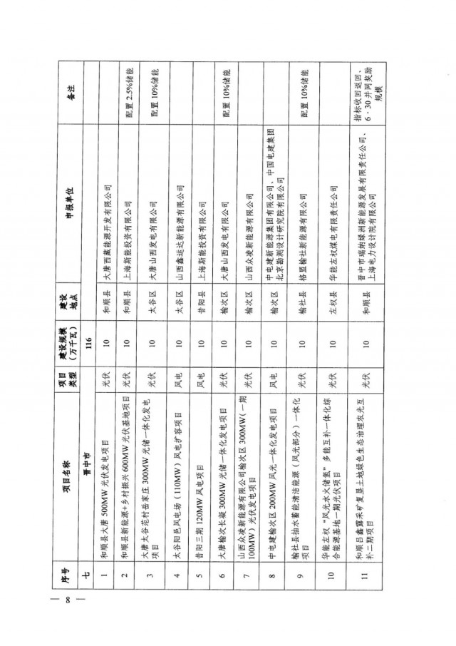 支持新能源產(chǎn)業(yè)發(fā)展項目34個,裝機(jī)372萬千瓦(3.72GW)。其中,光伏項目16個,風(fēng)光一體項目1個(含光伏6萬千瓦),涉及光伏項目共197萬千瓦(1.97GW)。要求確保項目于2024年12月底全容量并網(wǎng)。
