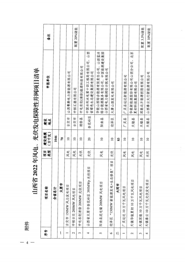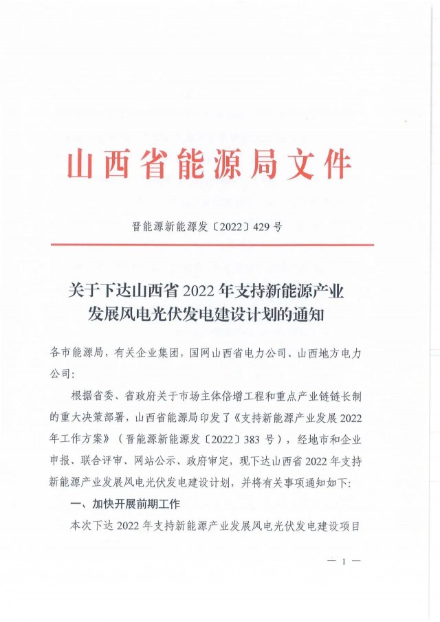 近日,山西省能源局先后印發(fā)了《關(guān)于下達(dá)山西省2022年風(fēng)電光伏發(fā)電保障性并網(wǎng)年度建設(shè)計劃的通知》(晉能源新能源發(fā)〔2022〕428號)和《關(guān)于下達(dá)山西省2022年支持新能源產(chǎn)業(yè)發(fā)展風(fēng)電光伏發(fā)電建設(shè)計劃的通知》(晉能源新能源發(fā)〔2022〕429號),共下達(dá)風(fēng)電、光伏項目132個,規(guī)模合計1418萬千瓦(14.18GW)。