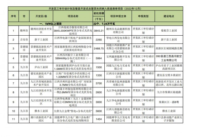 近日,江西省可再生能源信息中心發(fā)布了開發(fā)區(qū)三年行動計劃及整縣開發(fā)試點(diǎn)屋頂光伏納入優(yōu)選清單。