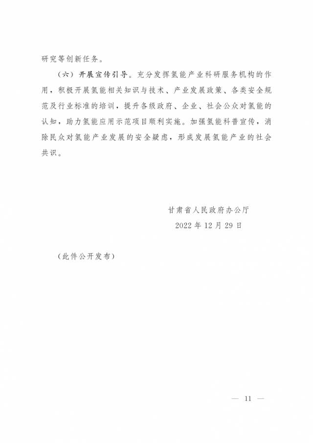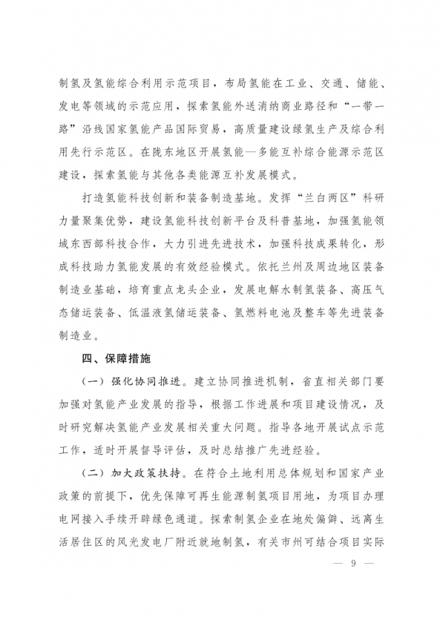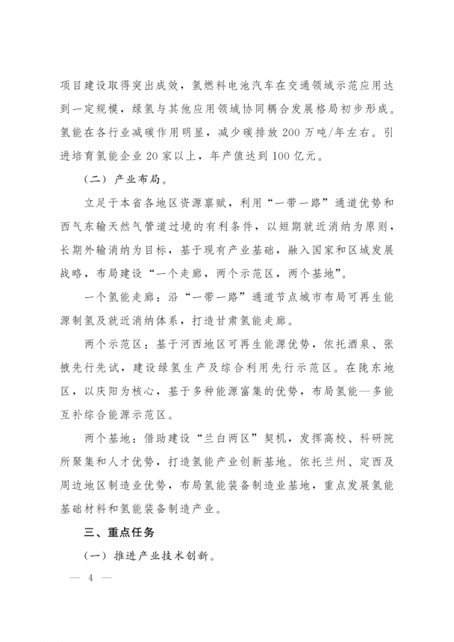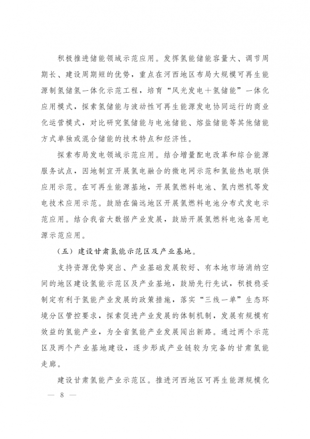 1月3日,甘肅省人民政府辦公廳發(fā)布關(guān)于氫能產(chǎn)業(yè)發(fā)展的指導(dǎo)意見,意見指出,支持在高速公路服務(wù)區(qū)內(nèi)布局建設(shè) “分布式光伏+制氫、儲氫、加氫”一體化示范應(yīng)用。培育 “風光發(fā)電+氫儲能”一體化應(yīng)用模式,探索氫儲能與波動性可再生能源發(fā)電協(xié)同運行的商業(yè)化運營模式,對比研究氫儲能與電池儲能、熔鹽儲能等其他儲能方式單獨或混合儲能的技術(shù)特點和經(jīng)濟性。