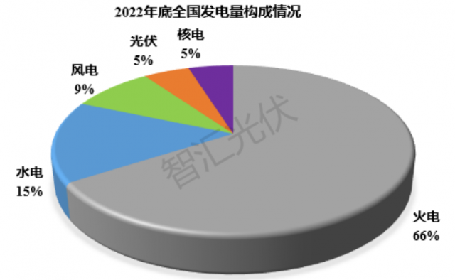 截止2022年底,各類電源累計(jì)裝機(jī)結(jié)構(gòu)如下圖所示。其中,風(fēng)電、光伏裝機(jī)占比達(dá)到30%。