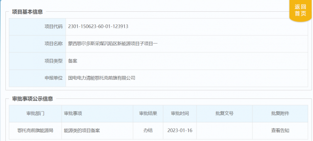 1月16日,國家能源集團國電電力蒙西鄂爾多斯采煤沉陷區(qū)300萬千瓦光伏項目取得備案證明。