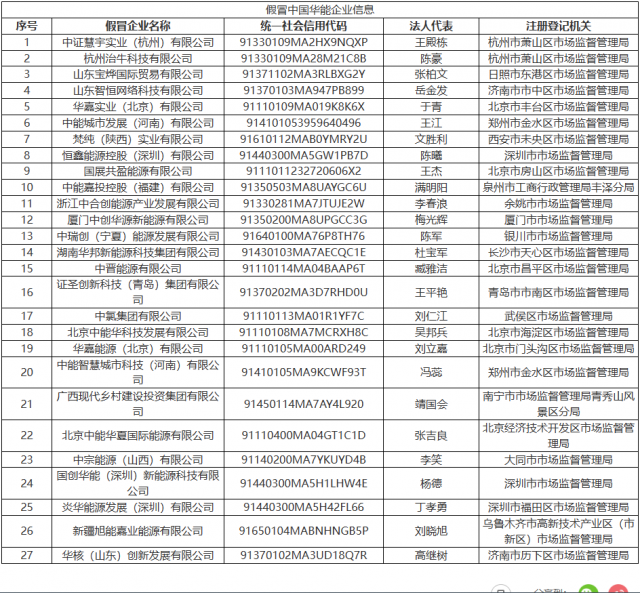 3月22日,華能新能源股份有限公司發(fā)布嚴正聲明,稱有不法分子通過偽造華能新能源股份有限公司證照和印章,在全國多地將17家企業(yè)登記為華能新能源下屬子公司,并可能存在涉嫌以華能新能源及所屬企業(yè)名義開展經(jīng)營活動的情形,其中部分企業(yè)侵犯了“華能”字號,對華能新能源的聲譽造成不良影響。