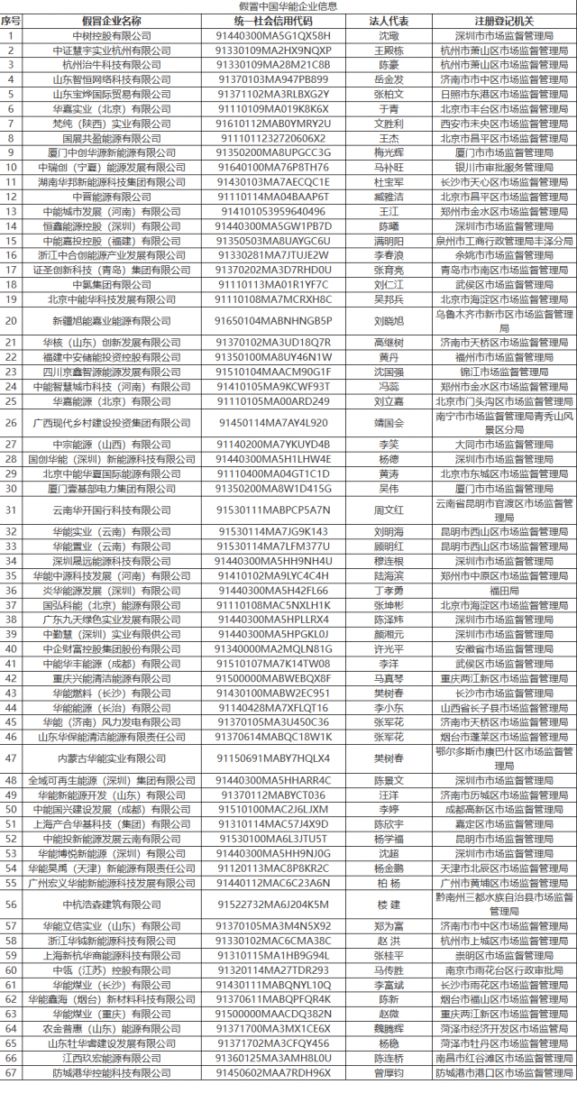 3月15日,華能集團發(fā)現(xiàn)不法分子通過偽造其所屬企業(yè)證照和印章,在北京、深圳、杭州、鄭州、西安、福州、昆明、長沙等地工商系統(tǒng)中將67家企業(yè)登記為華能(大連)能源熱力有限責任公司、華能置業(yè)有限公司、華能海外企業(yè)管理有限公司、華能新能源股份有限公司、華能煤業(yè)公司、華能能源交通產(chǎn)業(yè)控股有限公司以及天津華能楊柳青熱電實業(yè)有限公司下屬子公司,并可能存在涉嫌以中國華能及所屬企業(yè)名義開展經(jīng)營活動的情形,其中部分企業(yè)侵犯了“華能”字號,對中國華能的聲譽造成不良影響。
