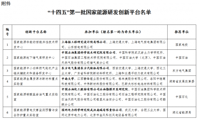 附件:“十四五”第一批國(guó)家能源研發(fā)創(chuàng)新平臺(tái)名單