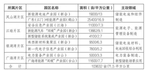 表2江門市新型儲(chǔ)能產(chǎn)業(yè)布局范圍面積