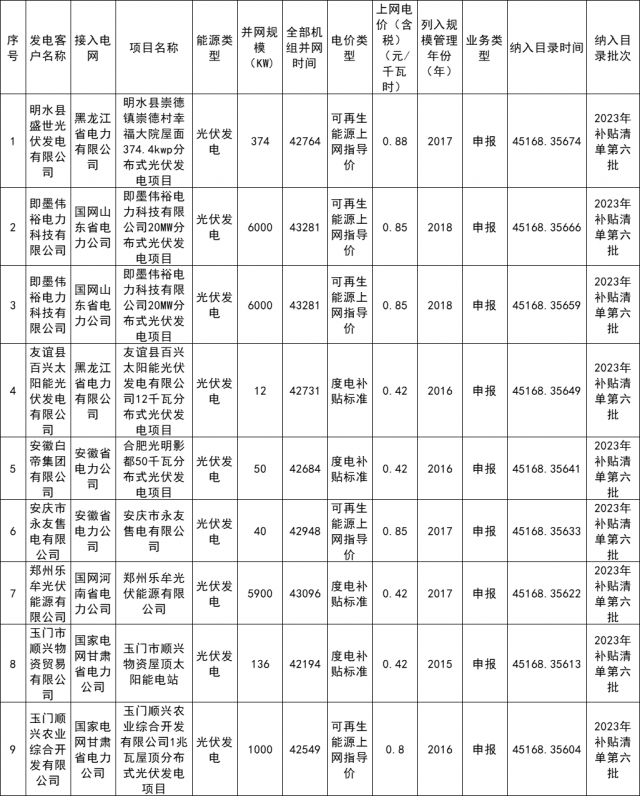 國網(wǎng)公布2023年第六批可再生能源發(fā)電補貼項目名單