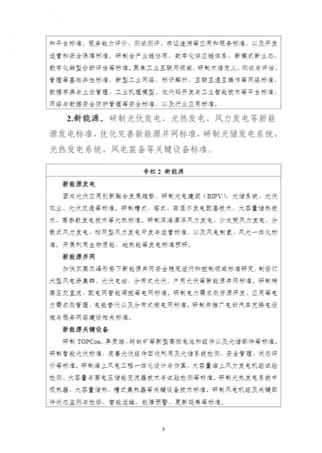 在新能源方面:研制光伏發(fā)電、光熱發(fā)電、風力發(fā)電等新能源發(fā)電標準,優(yōu)化完善新能源并網標準,研制光儲發(fā)電系統(tǒng)光熱發(fā)電系統(tǒng)、風電裝備等關鍵設備標準。