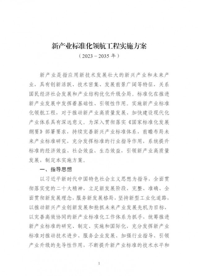 日前,工信部等四部門發(fā)布關于印發(fā)《新產業(yè)標準化領航工程實施方案(2023─2035年)(以下簡稱《方案》)》的通知。