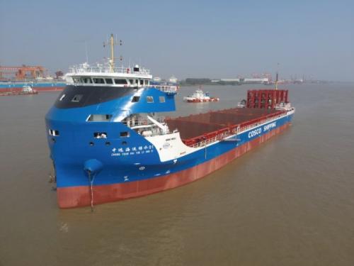 2023年10月16日,揚州中遠海運重工有限公司新建全球首制700TEU純電池動力集裝箱船“中遠海運綠水01”輪,由揚州中遠海運重工有限公司碼頭開航至儀征捷水道進行航行操作試驗,正式開啟本次試航之旅。