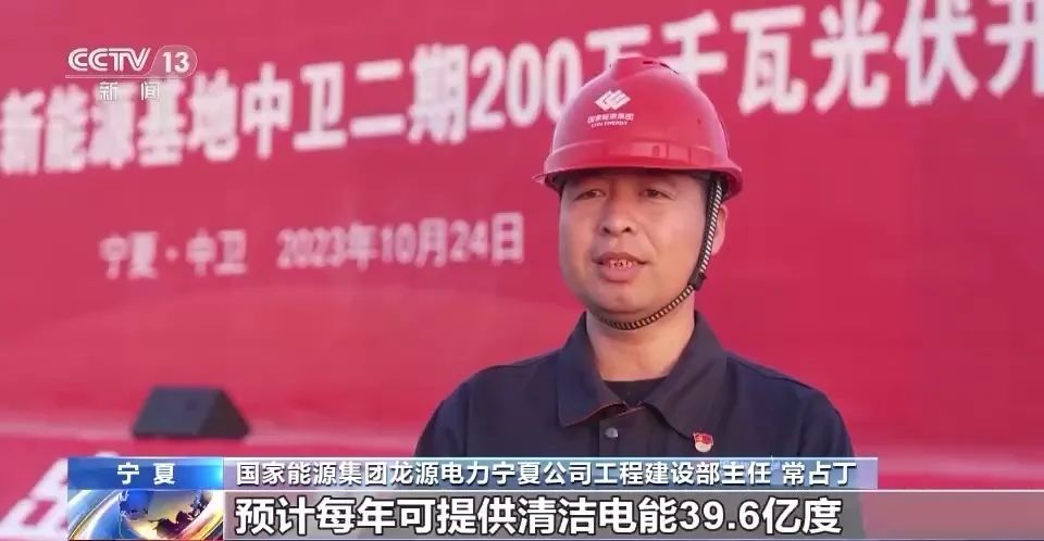 國家能源集團(tuán)龍源電力寧夏公司工程建設(shè)部主任常占?。憾陧椖拷ǔ刹⒕W(wǎng)后,預(yù)計每年可提供清潔電能39.6億度,節(jié)約120.7萬噸標(biāo)準(zhǔn)煤,可滿足330萬個家庭一年的用電量。