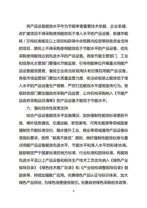 結(jié)合產(chǎn)品設(shè)備能效水平實(shí)施情況,加快強(qiáng)制性能效標(biāo)準(zhǔn)更新升級(jí),填補(bǔ)可再生能源等領(lǐng)域國(guó)家強(qiáng)制性節(jié)能標(biāo)準(zhǔn)空白,穩(wěn)步提升工業(yè)、商業(yè)等領(lǐng)域通用產(chǎn)品設(shè)備標(biāo)準(zhǔn)指標(biāo)要求。