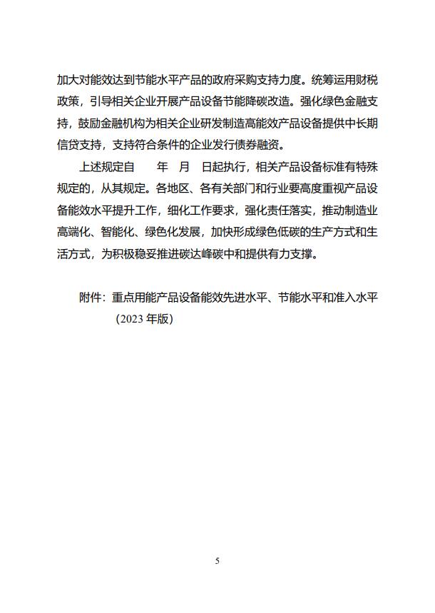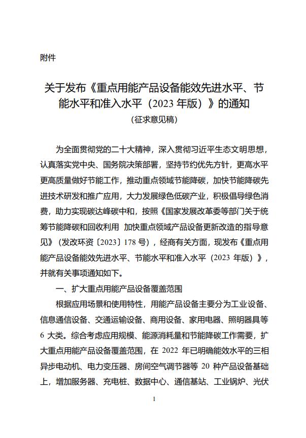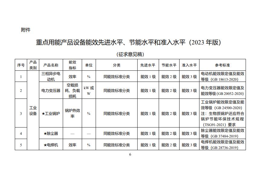 附件:關(guān)于發(fā)布《重點(diǎn)用能產(chǎn)品設(shè)備能效先進(jìn)水平、節(jié)能水平和準(zhǔn)入水平(2023年版)》的通知(征求意見(jiàn)稿)