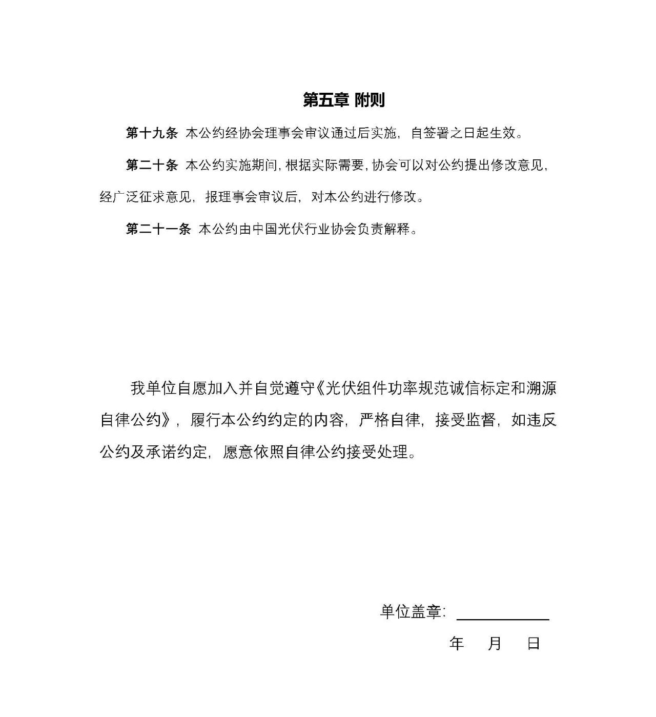 目前,中國光伏行業(yè)協(xié)會(huì)已組織40余家光伏企事業(yè)單位簽署了《自律公約》,涵蓋國內(nèi)骨干光伏組件企業(yè)、第三方檢測(cè)機(jī)構(gòu)、認(rèn)證計(jì)量機(jī)構(gòu)等多個(gè)環(huán)節(jié),后續(xù)還將組織更多單位參與簽約。