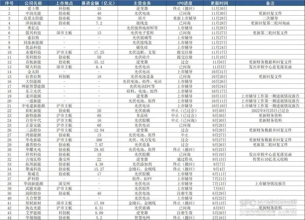 如今,光伏賽道的IPO正在進入“冷靜期”。21世紀經(jīng)濟報道記者注意到,從啟動IPO工作的企業(yè)數(shù)量上看,光伏行業(yè)在2023年依然活躍。只不過隨著一家又一家企業(yè)中途退出或停滯,整個行業(yè)的IPO氛圍大不如前。