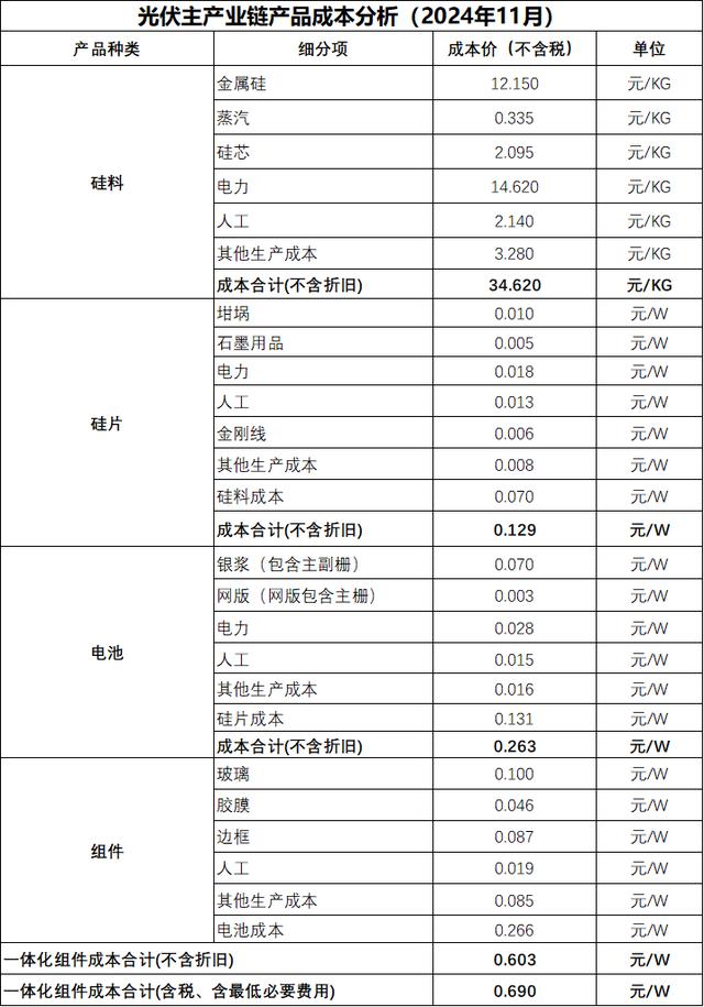 11月20日,協(xié)會(huì)更新了11月的成本數(shù)據(jù),在10月份“底價(jià)”的基礎(chǔ)上新增考慮最低必要費(fèi)用,將組件最低成本價(jià)提升至0.69元/瓦。