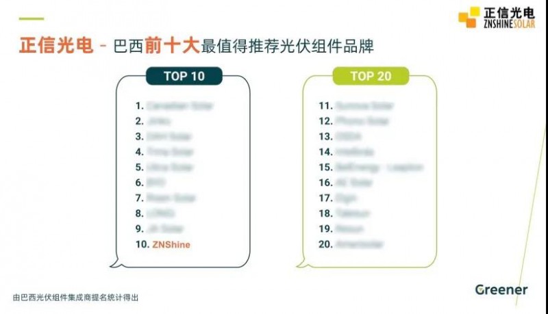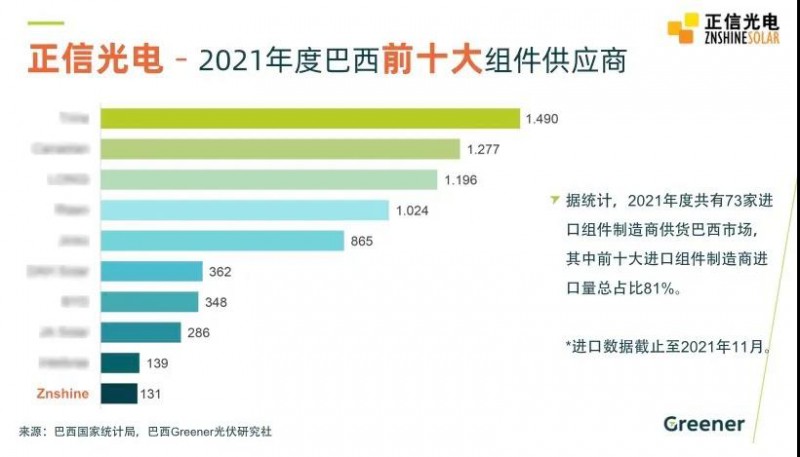 根據(jù)巴西國家統(tǒng)計局及巴西權(quán)威光伏研究社Greener的最新統(tǒng)計,正信光電以堅挺的組件出口業(yè)績,再次名列2021年度巴西前十大組件供應(yīng)商。