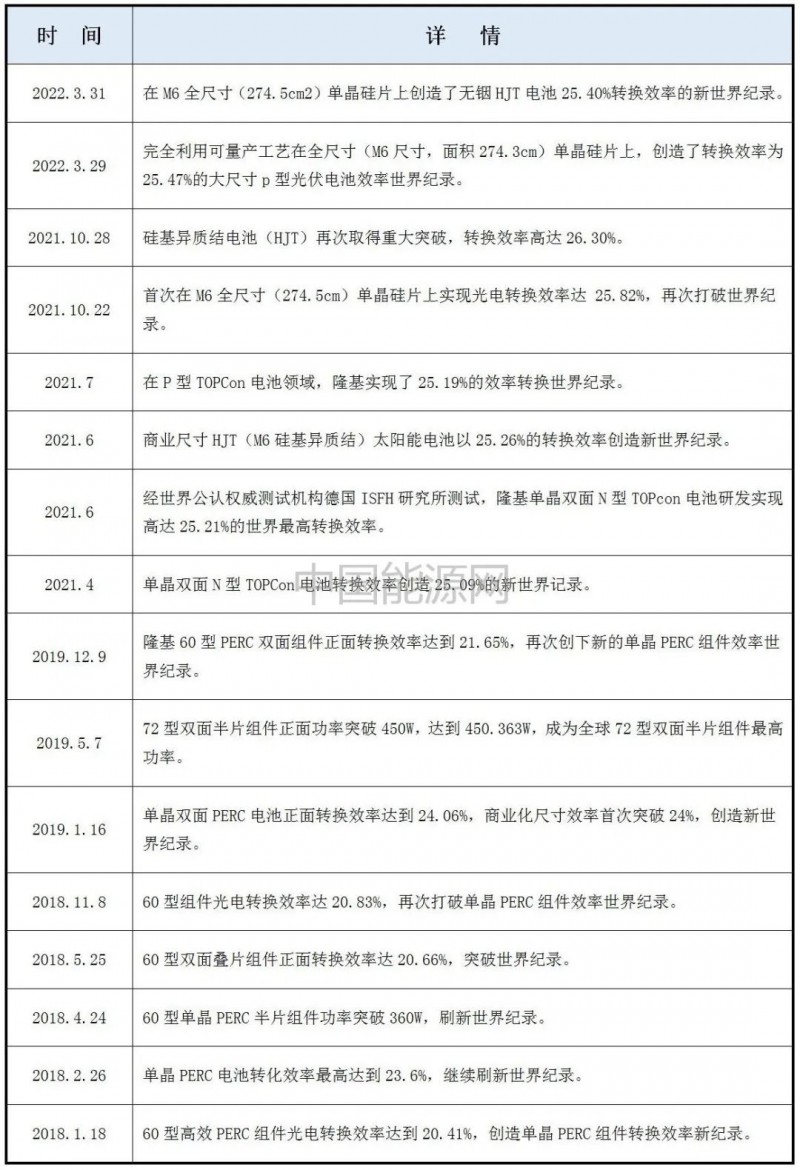 2018年至今,隆基組件轉(zhuǎn)換效率多次刷新世界紀(jì)錄,量產(chǎn)效率也在不斷攀升,表現(xiàn)出隆基以技術(shù)創(chuàng)新引領(lǐng)全球能源轉(zhuǎn)型的信心與決心。