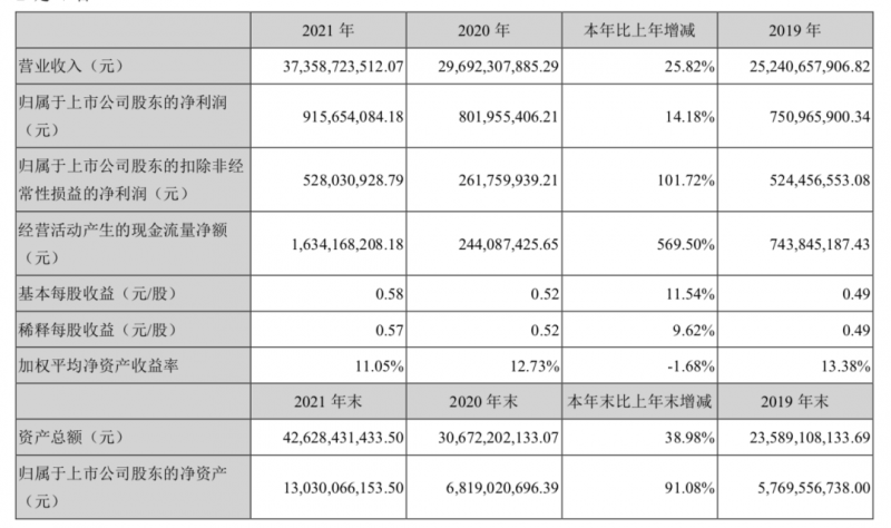 4月12日晚上,欣旺達(dá)公布了2021年的年報業(yè)績,整個2021年欣旺達(dá)實(shí)現(xiàn)了全年?duì)I業(yè)收入373.6億元,同比增長25.82%,歸母凈利潤為9.16億元,同比增長14.18%,扣非凈利潤為5.28億元,同比增長101.7%,毛利率為14.69%,基本持平,凈利率降低了0.4個百分點(diǎn)到2.29%。